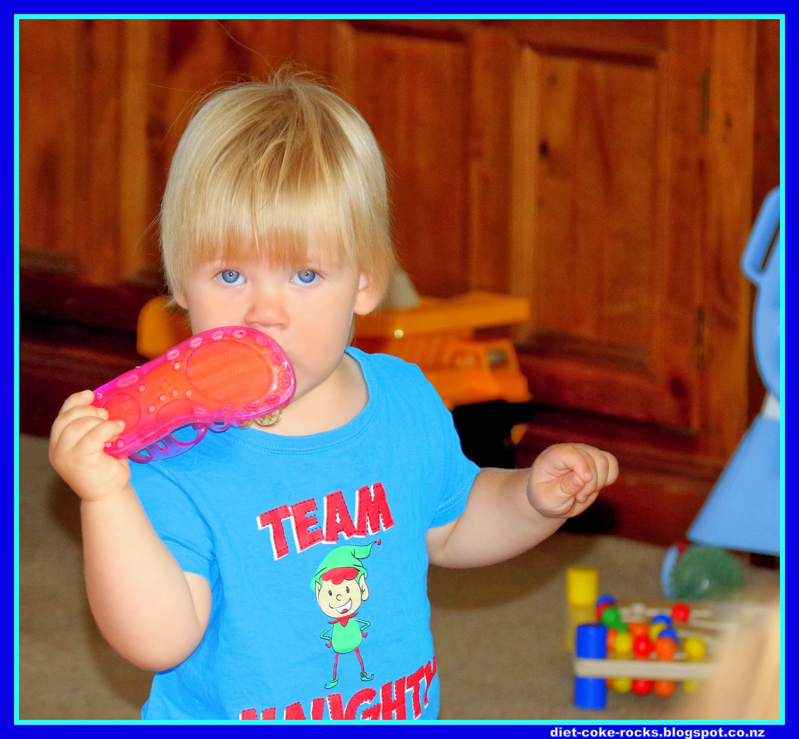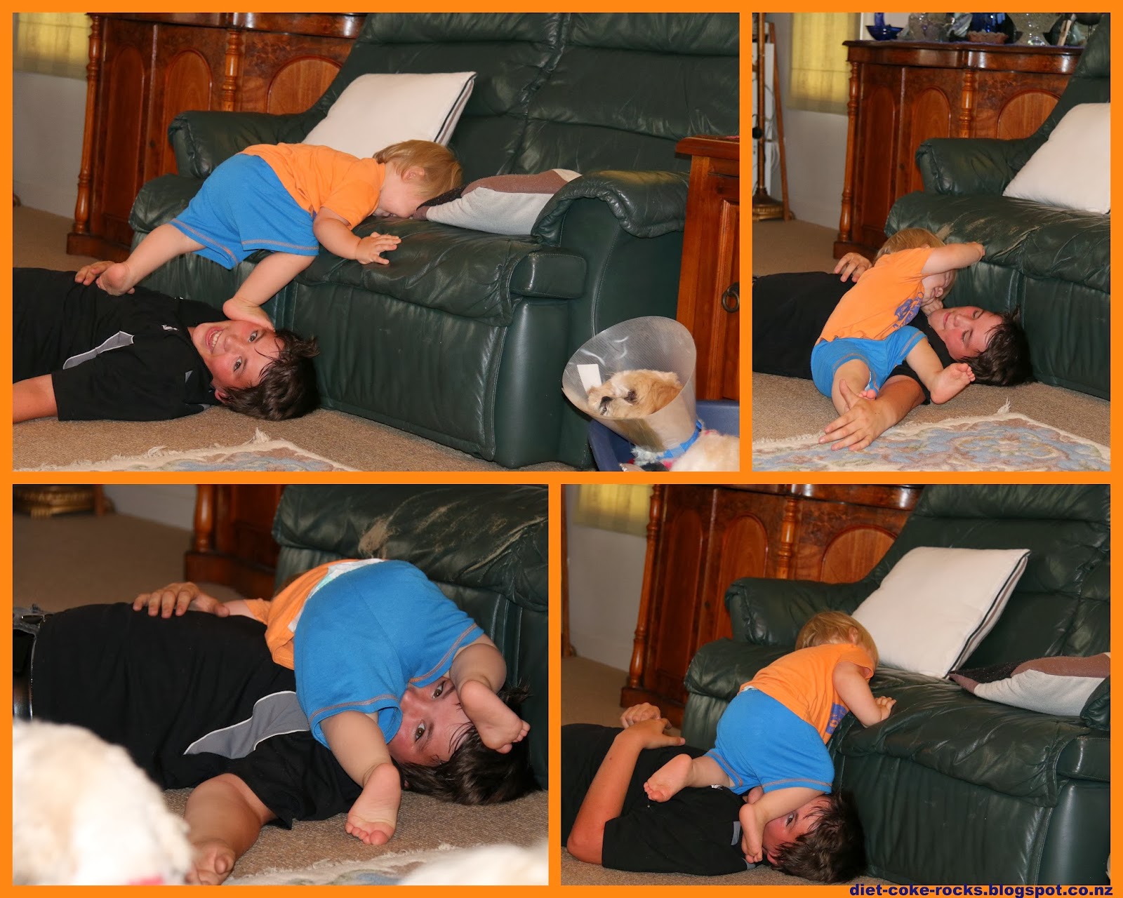 ABOVE: Coco keeping an eye on the littles. Dante boosting his resistance to germs by chewing on his cousin Keera's shoes. Ikkk. His Mother didn't bat an eye.