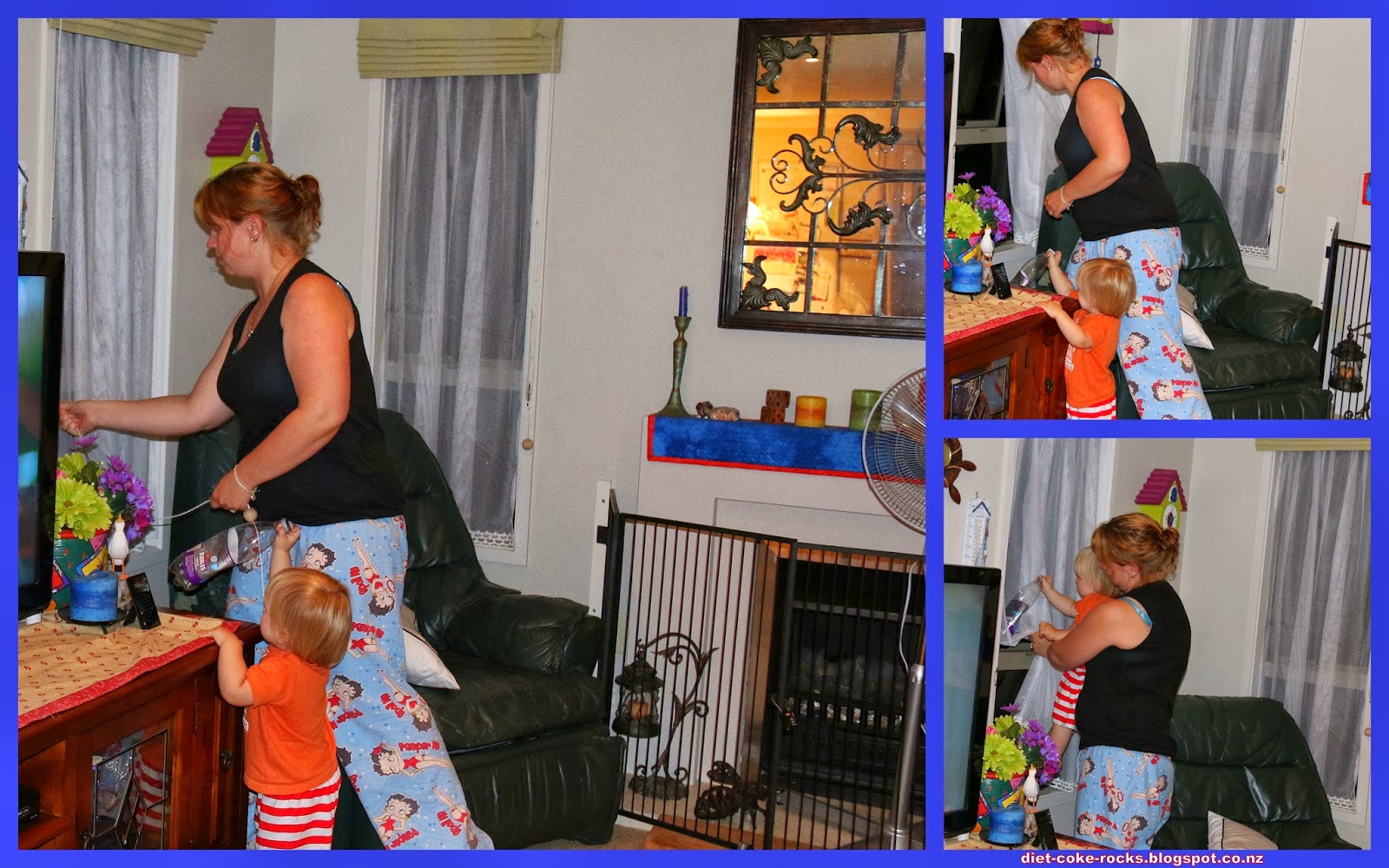 While he was here he picked up Dante, and umm... Dante had a crappy nappy and Stew got a little bit of 'seepage' on his business shirt, so he's having to change before heading back to work. lol